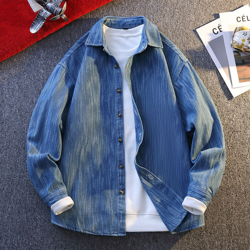 ごろつきのハンサムなデニムのシャツの男性の金の春秋の新型のカジュアルなコートの春は服の青少年のハンサムな百合のシャツを詰めます。