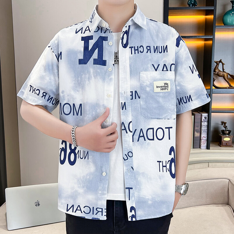 半袖のシャツの男性のタイプの夏の新型のゆったりしたアルファベットのプリントの5分の袖の純綿のシャツのコートのカジュアルな百合のファッション