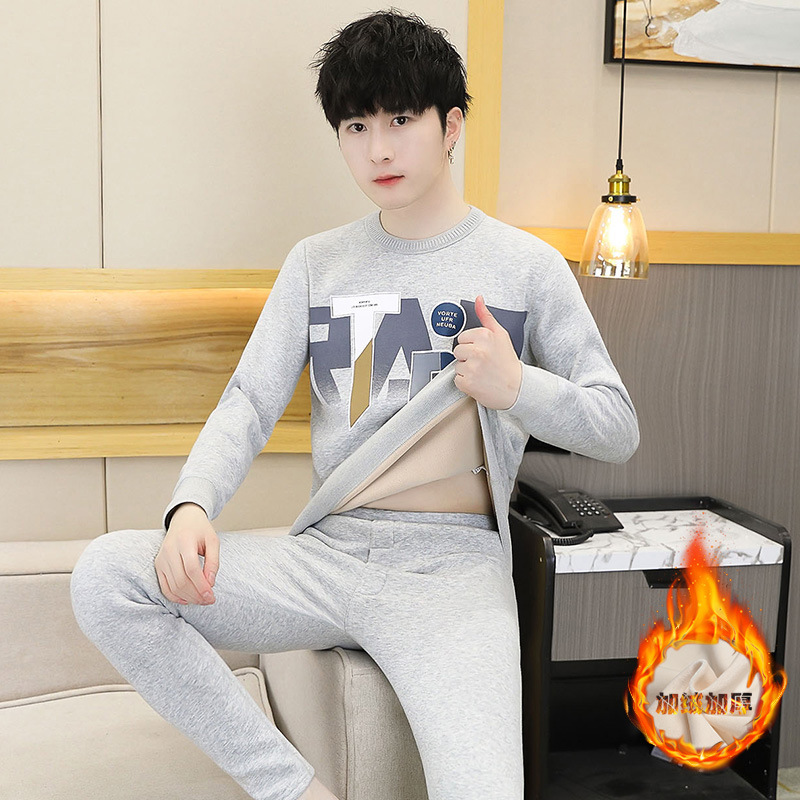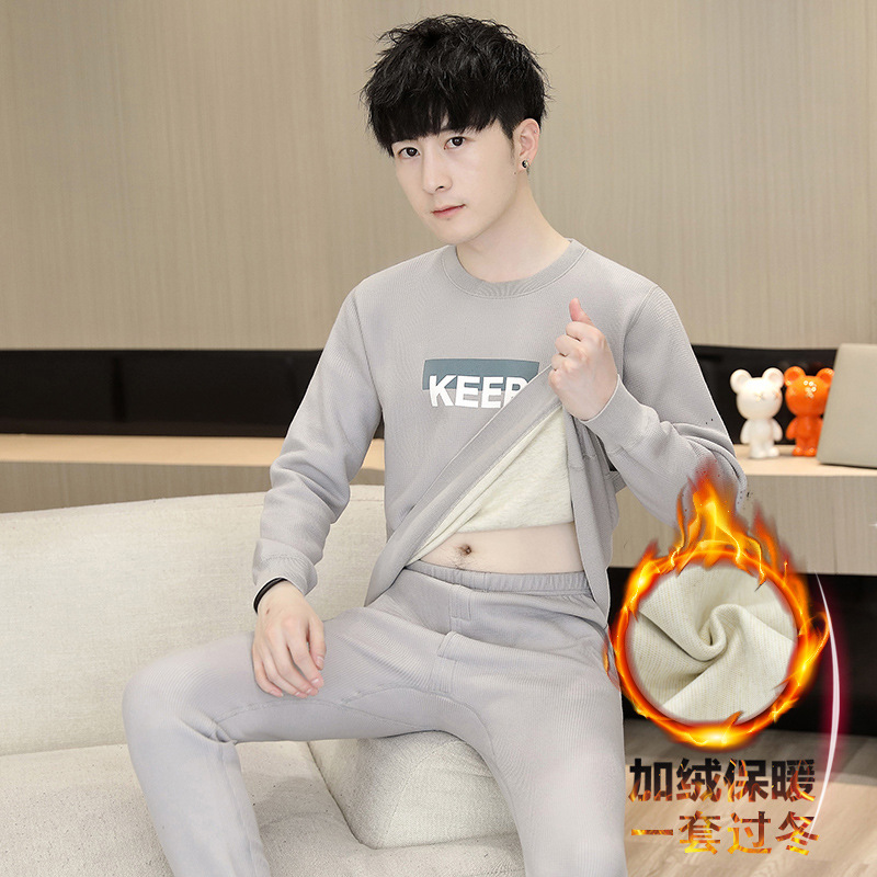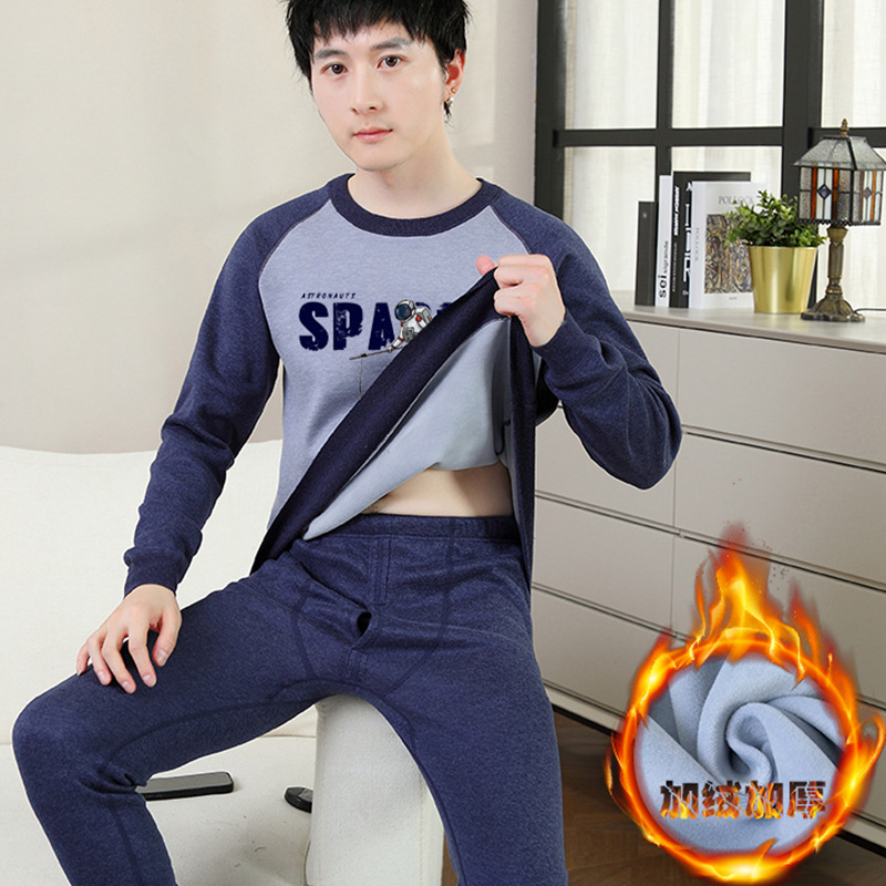 冬の厚着保温下着男性とベルベットの厚手セットは秋衣秋ズボン青少年学生が底をつく