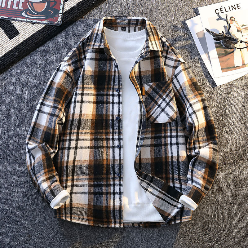 新しい長袖のシャツの男性の項のゆったりしているカジュアルなシャツの上着の男性の春と秋の百合の格子のシャツの韓国版