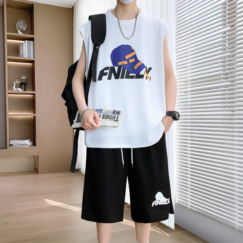 ティーンエイジャーの夏のノースリーブスーツルーズTシャツ薄いベストショーツカジュアルスポーツスーツノースリーブツーピーススーツ