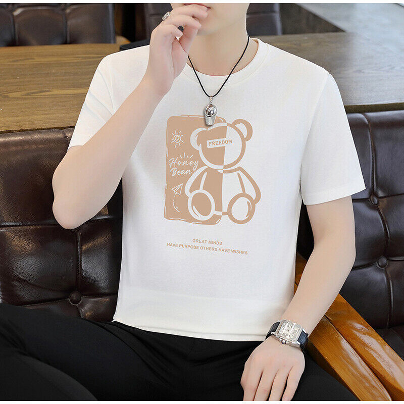夏の韓国風プリント半袖Tシャツメンズトレンディハンサムで多用途な新しい若者夏半袖Tシャツ