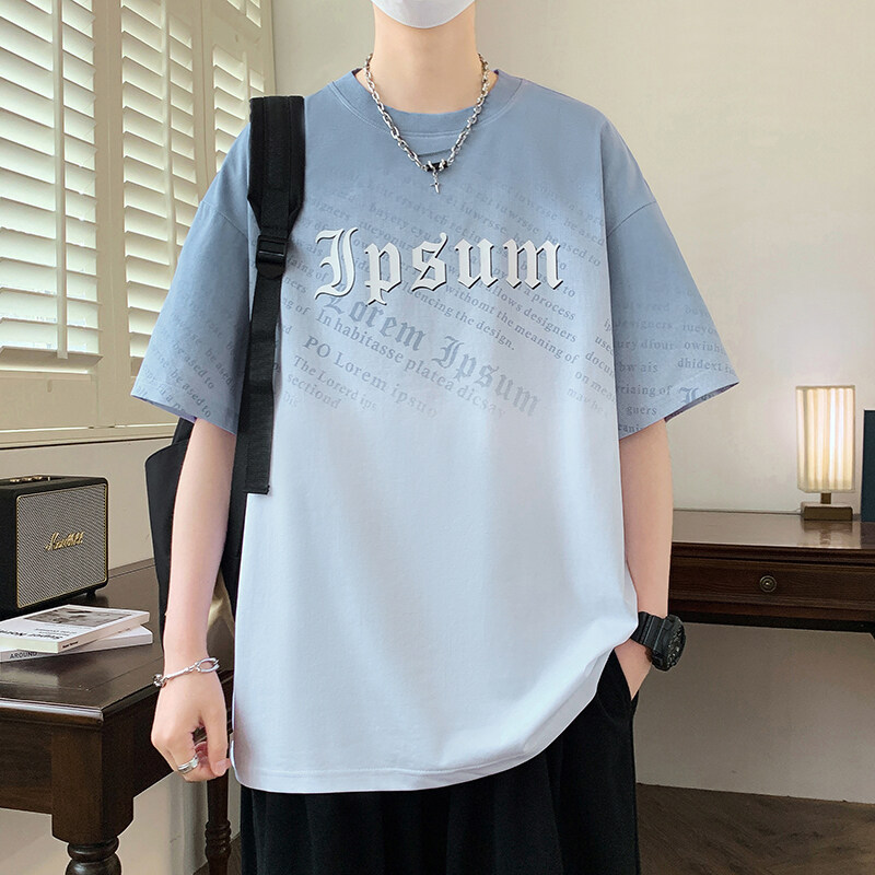 若者グラデーションカラー半袖メンズ夏多用途プリントルーズ五分袖Tシャツファッショナブルでハンサムな半袖