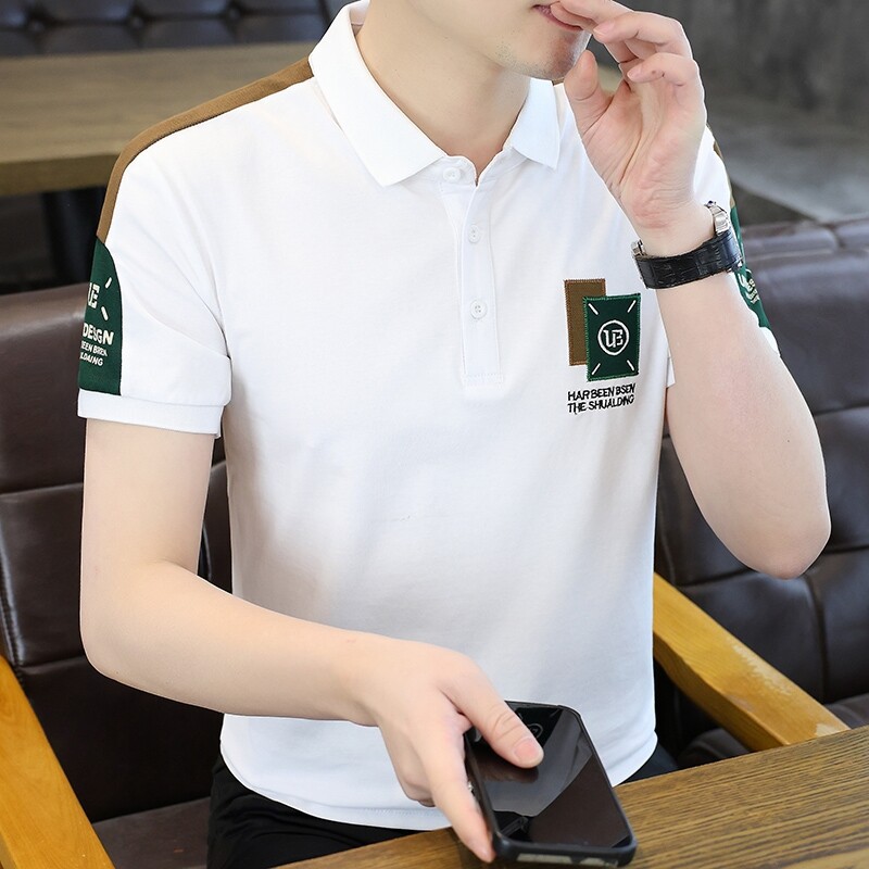 夏半袖ポロシャツ Tシャツメンズラペル半袖新作万能カジュアルトップス若者刺繍 Tシャツ