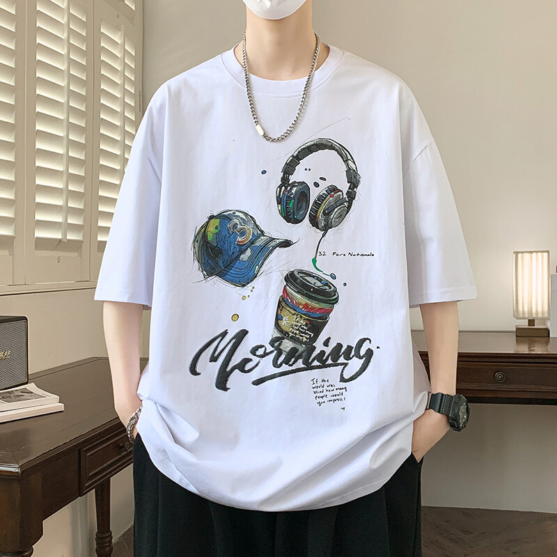 カジュアル半袖 Tシャツメンズ夏の新しいルーズ半袖漫画プリントトップスティーンエイジャーラウンドネックファッション Tシャツ