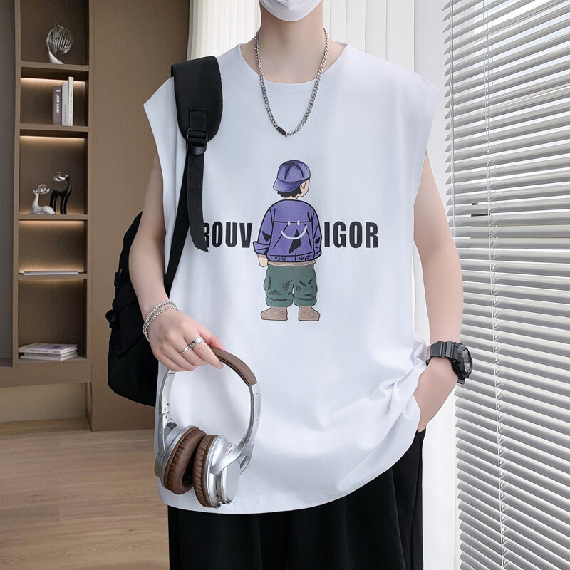 夏ノースリーブ Tシャツボーイズラウンドネックプリント薄いチョッキベストティーンエイジャーのハンサムな夏のスポーツトップス