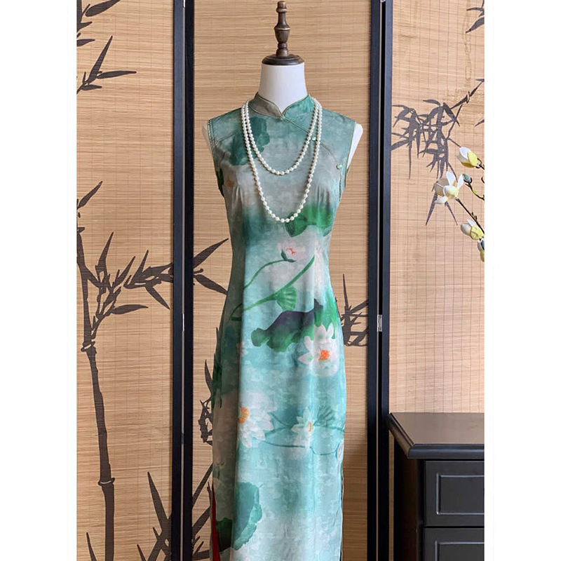 改良版チャイナドレス女装2025年早春修身ワンピース古法優しい文芸範ステッチ薄紗ロングスカート