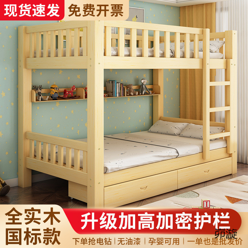 全無垢材国家標準二段ベッド、小さなアパート用二段ベッド、大人と子供用の高さのある二段ベッド、木製ベッド