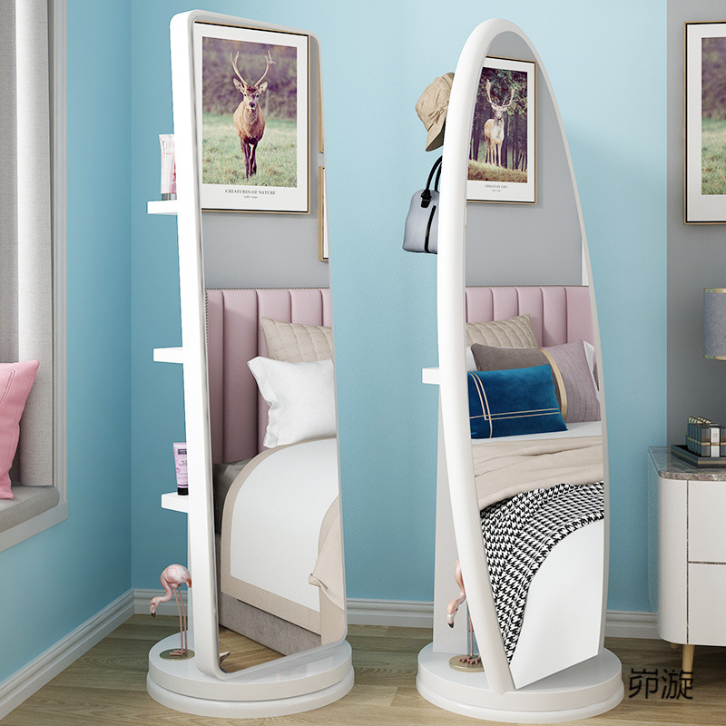 シンプルなドレッシングミラー、全身フロアミラー、自宅の寝室の回転式可動女の子フィッティングミラー、リビングルームの立体ミラー