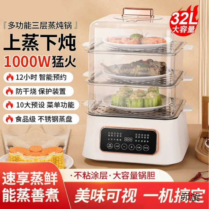 電気蒸し器家庭用オールインワン多機能電気鍋三層ステンレス鋼蒸しオールインワンスマート電気蒸し器