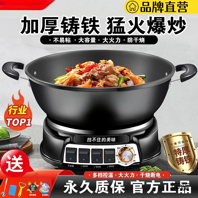 電気中華鍋、家庭用多機能蒸し、炒め、煮込み電気鍋、一体型電気鍋、鋳鉄中華鍋、ノンスティック鍋