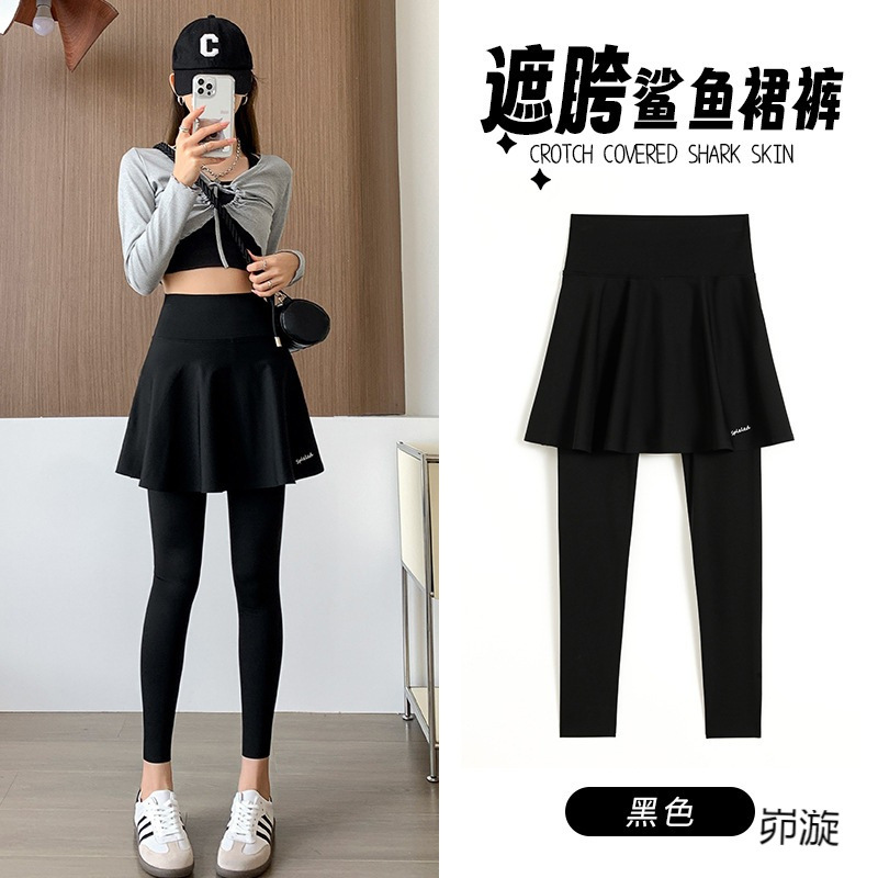 人気のサメスカートパンツ、女性用フェイクツーピースオープンクロッチパンツ、ハイウエストフィットネスパンツ、アウトドアデート、脱げないセクシーデリバリー新スタイル