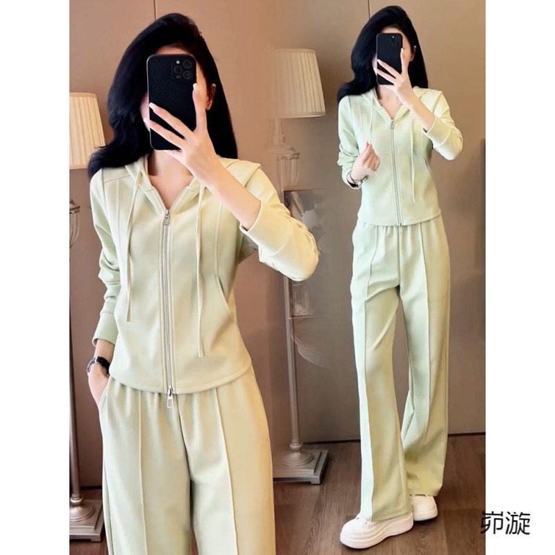 ヨーロッパカジュアルスポーツスーツ女性のための春と秋 2025 新しいファッショナブルなスタイルの年齢を減らすフード付きカーディガンスウェットシャツ 2 点セット