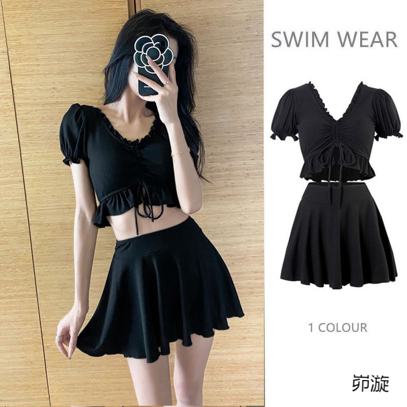 2025新型爆型少女水着分体スカート式高腰で痩せている韓国セクシーな小胸保守温泉水着