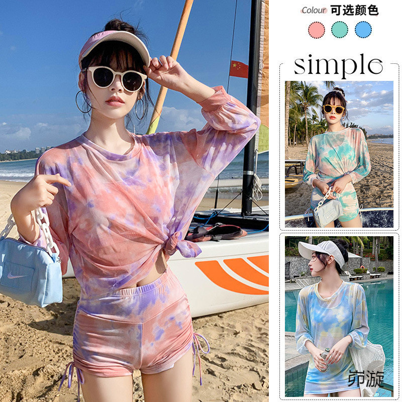 国境を越えて起爆した水着の女性3点セットは保守的な平角韓国の大きいサイズの肉を隠して長袖の水着の対外貿易を分けます。
