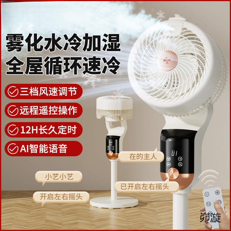 人気のインテリジェント音声加湿ファン家庭用ライトサウンドデスクスタンド両用シェイキングヘッドフロアファン空気循環ファン