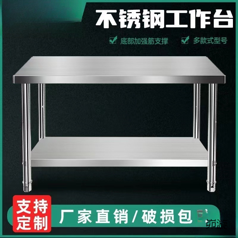 ステンレスまな板、三層キッチン作業台、厚みのあるステンレス作業台、二層梱包台テーブル
