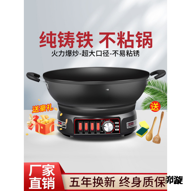 電気中華鍋、多機能家庭用電気鍋、鋳鉄電気鍋、炒め物、蒸し物、炒め物、揚げ物、オールインワンプラグイン中華鍋