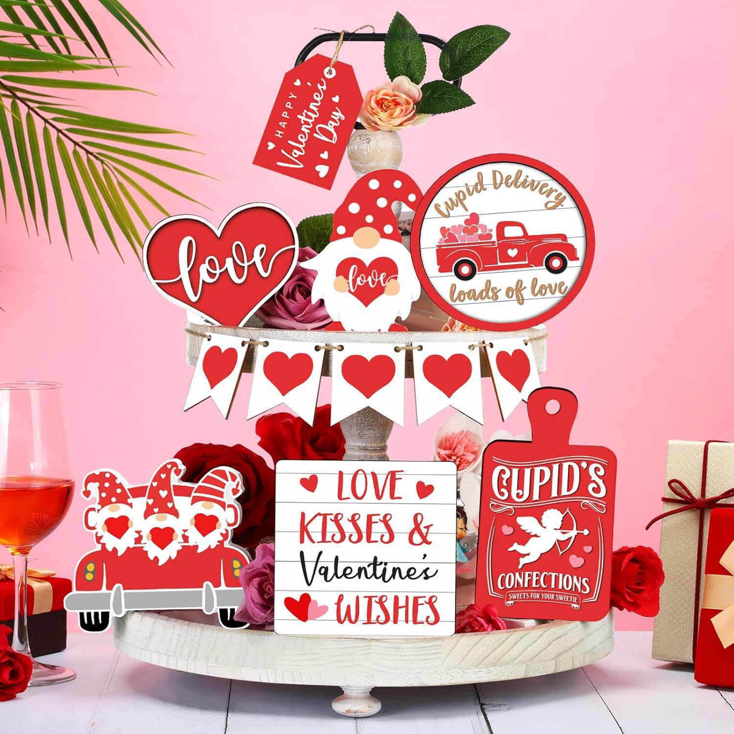 国境を越えた新しいバレンタインデー12点セットの階層トレイ赤装飾道具愛チャーチマーク工芸品