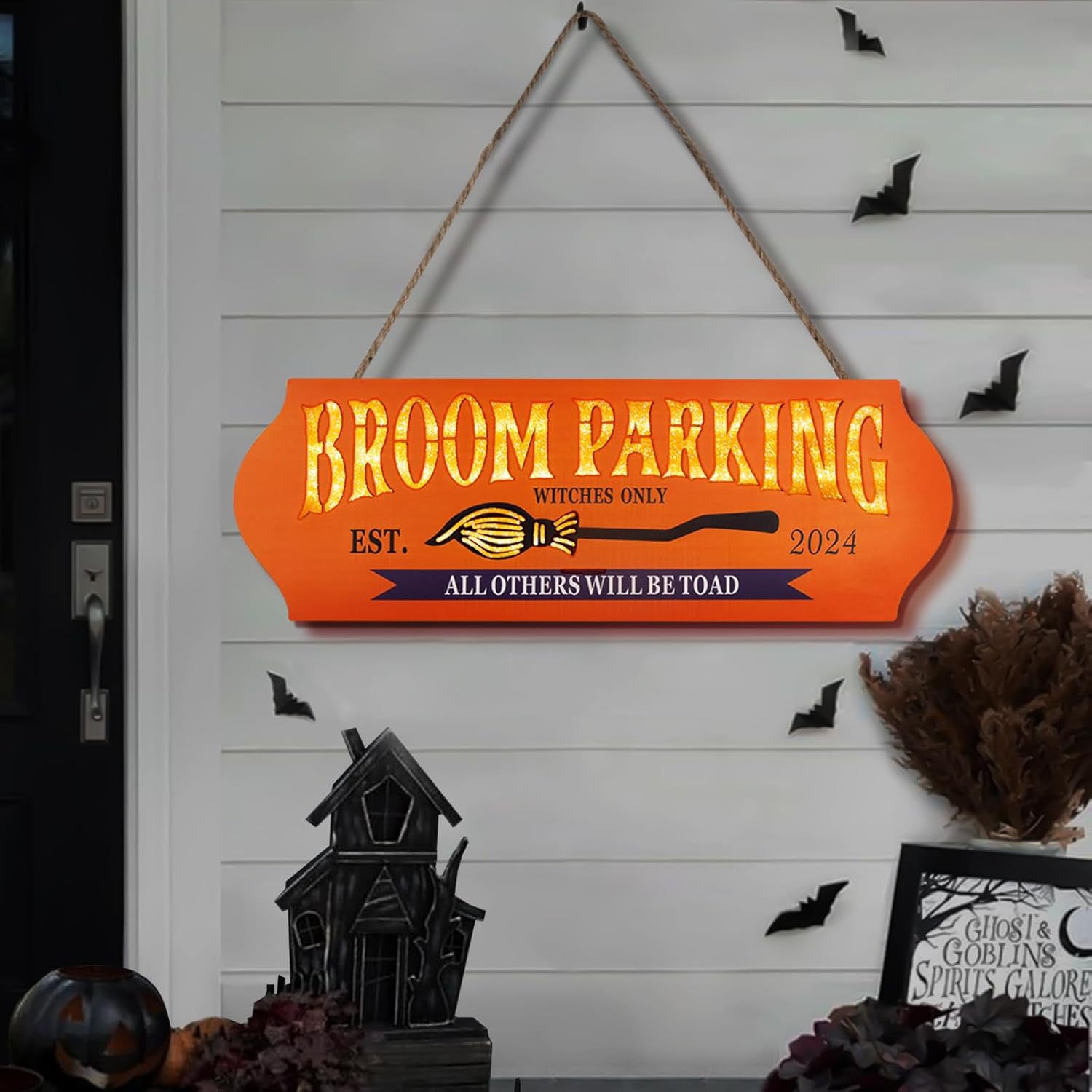 2024国境を越えた起爆ハロウィーンほうき標識表札パーティーに木製工芸品の壁を配置して装飾を歓迎する
