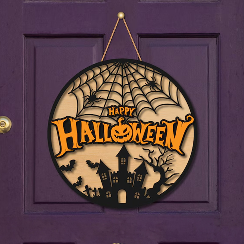 アマゾンクロスボーダー新品ハロウィン歓迎表札飾り看板祝日雰囲気円形木製装飾画