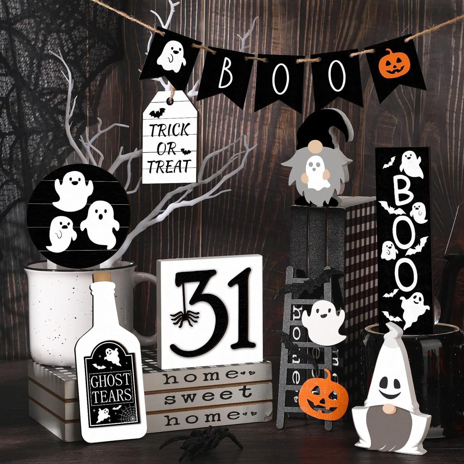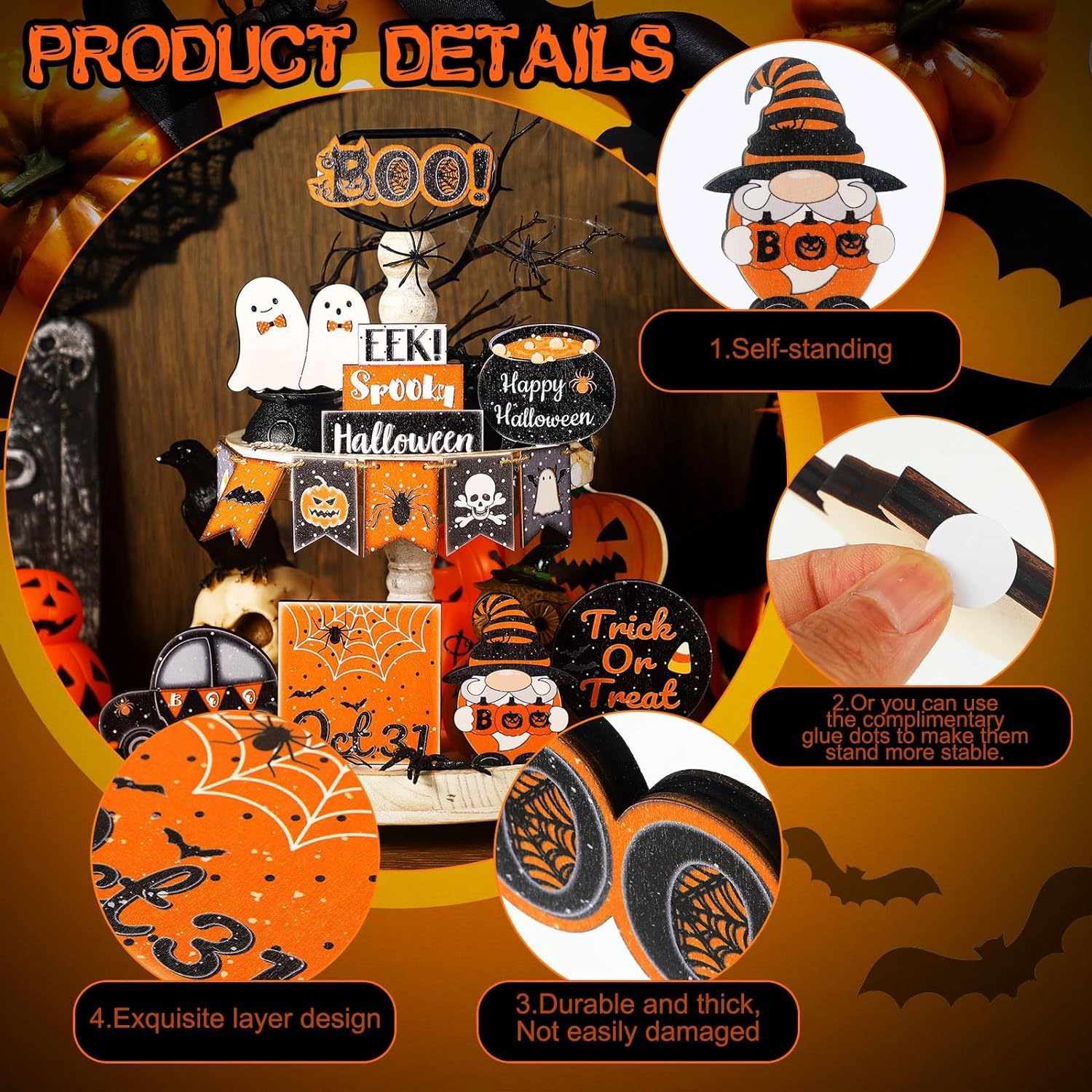 15点セットハロウィーン層トレイ装飾セット黒オレンジ色幽霊木ブロック装飾家庭標識祝日