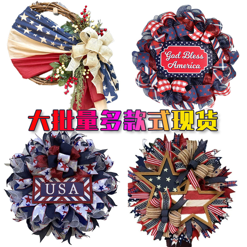2023アメリカ独立日国旗花輪フロントドアwreathフロントドアペンダント祭りシーン装飾