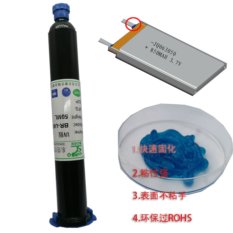 青い半流動uv接着剤紫外線硬化接着剤速乾新エネルギー電池極耳用接着剤