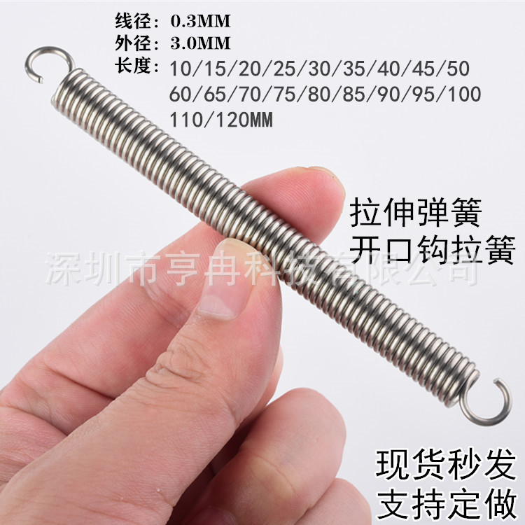 現物304ステンレス開放スプリング0.4線径外径4引張スプリング開放フックスプリングは商品を作ることができます。
