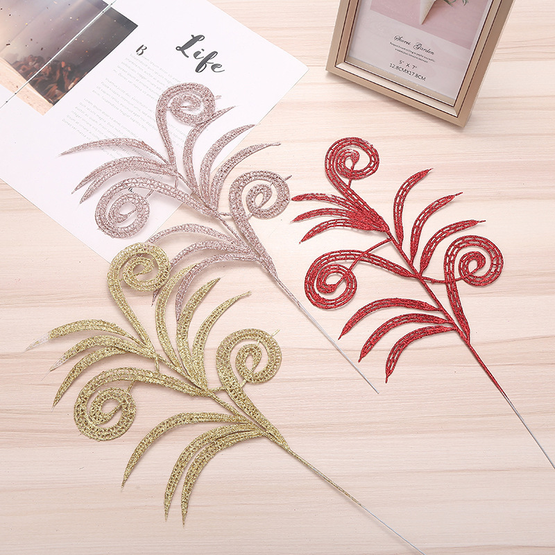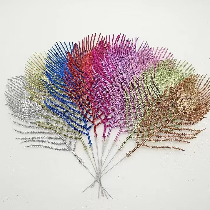 クリスマス金粉孔雀葉舞台道具マスク結婚慶節ギフトボックス装飾プラスチック葉