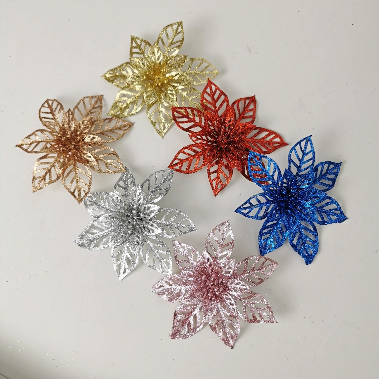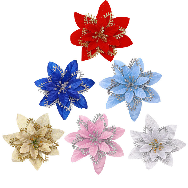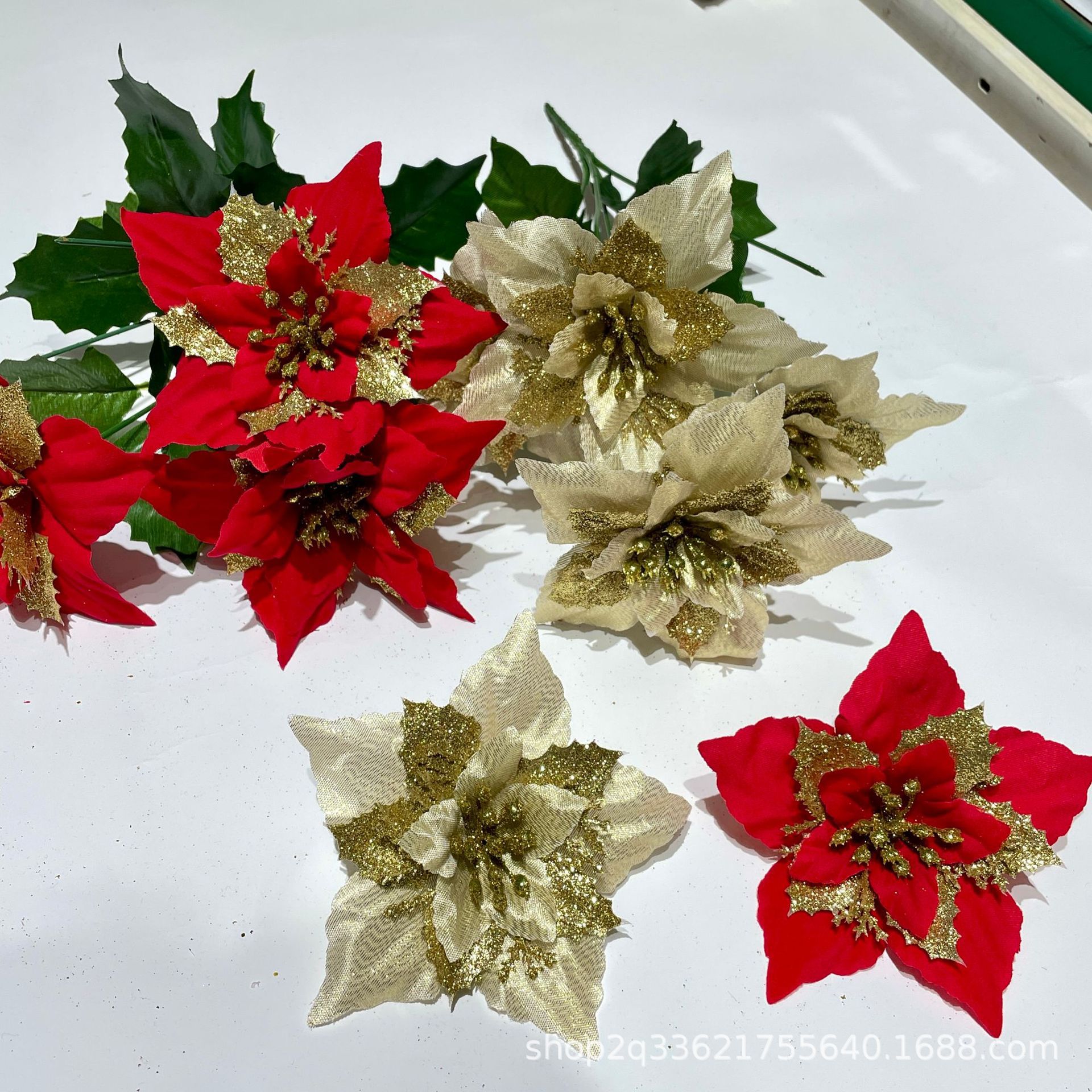 クリスマスツリー装飾用品クリスマス花25cm模造花金粉花クリスマスプレゼントクリスマス花輪アクセサリー
