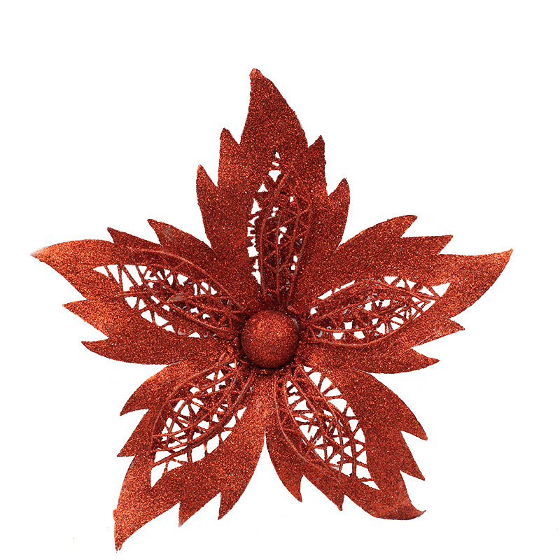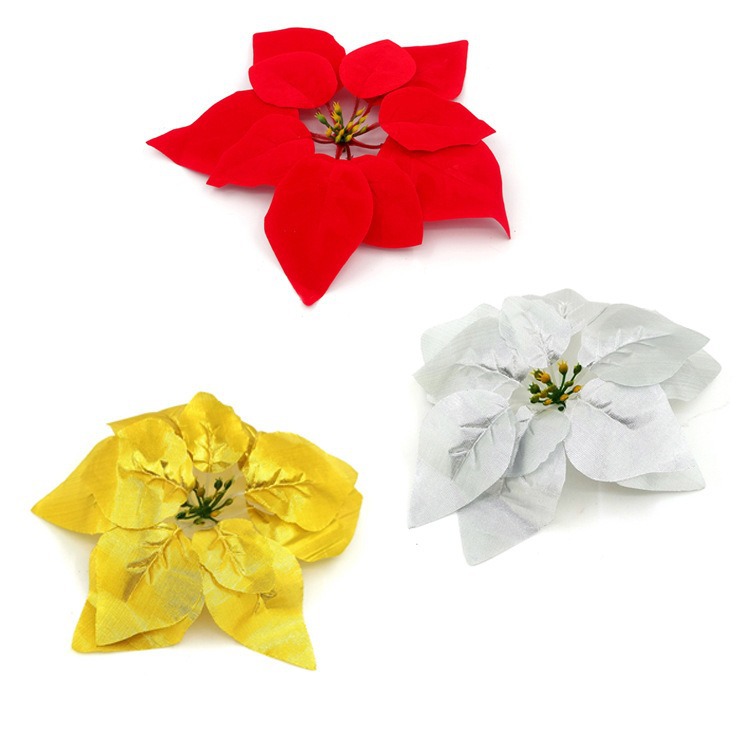 メーカー直販卸売り装飾クリスマス花9cm赤ベルベット五花金粉プラスチック