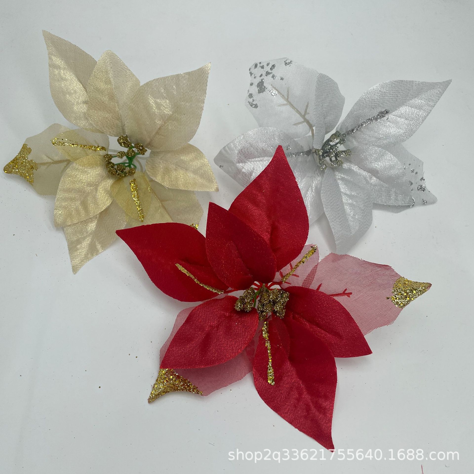 クリスマスの花を飾る模造花金粉部品装飾花網糸三層帯金辺