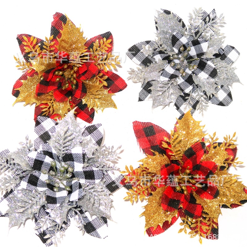 メーカーの新しい装飾クリスマスの花の部品の格子の布の新しい花の金粉の工芸