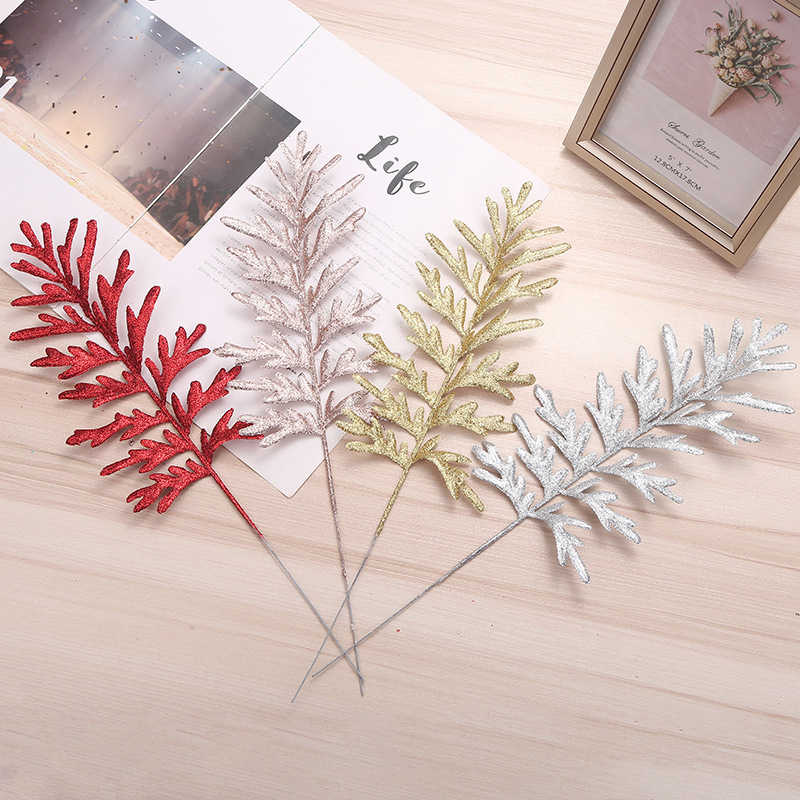 拡張金粉竹葉クリスマス花クリスマスツリー装飾フォトフレームドレスマスクシーン配置プラスチック金葉
