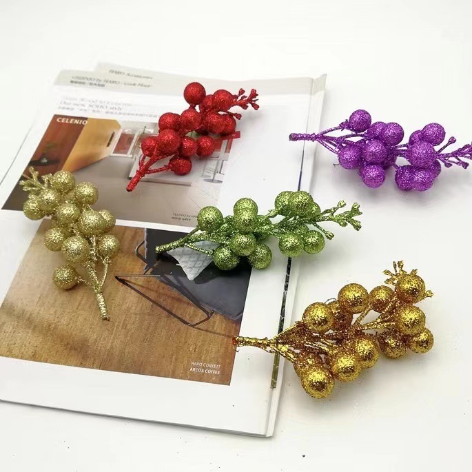12.5CM12個のボール金粉泡果串シミュレーション花クリスマスツリー結婚祝いギフトボックス生け花とアクセサリー赤