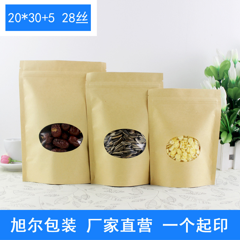 20*30 + 5窓開けクラフト紙自封袋食品自立袋茶葉封袋密封包装袋卸売り