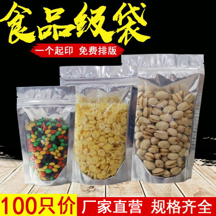 100本のアルミ箔陰陽袋を厚くした自封袋アルミ自立袋餌食品包装袋プラスチック封袋