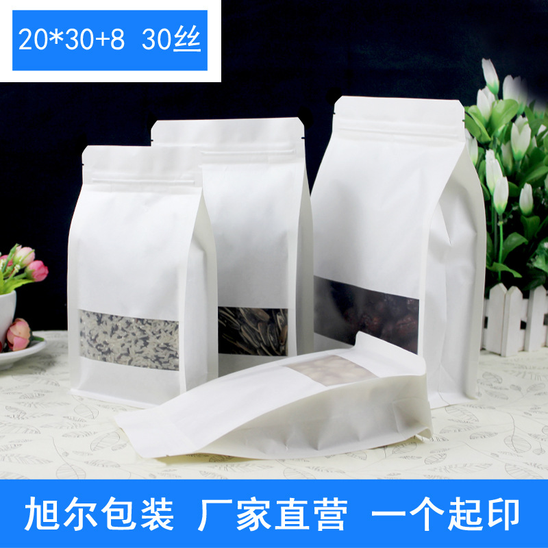 14*24 + 6八辺シール袋白色クラフト紙食品包装袋フロスト自封袋開窓シール袋現物