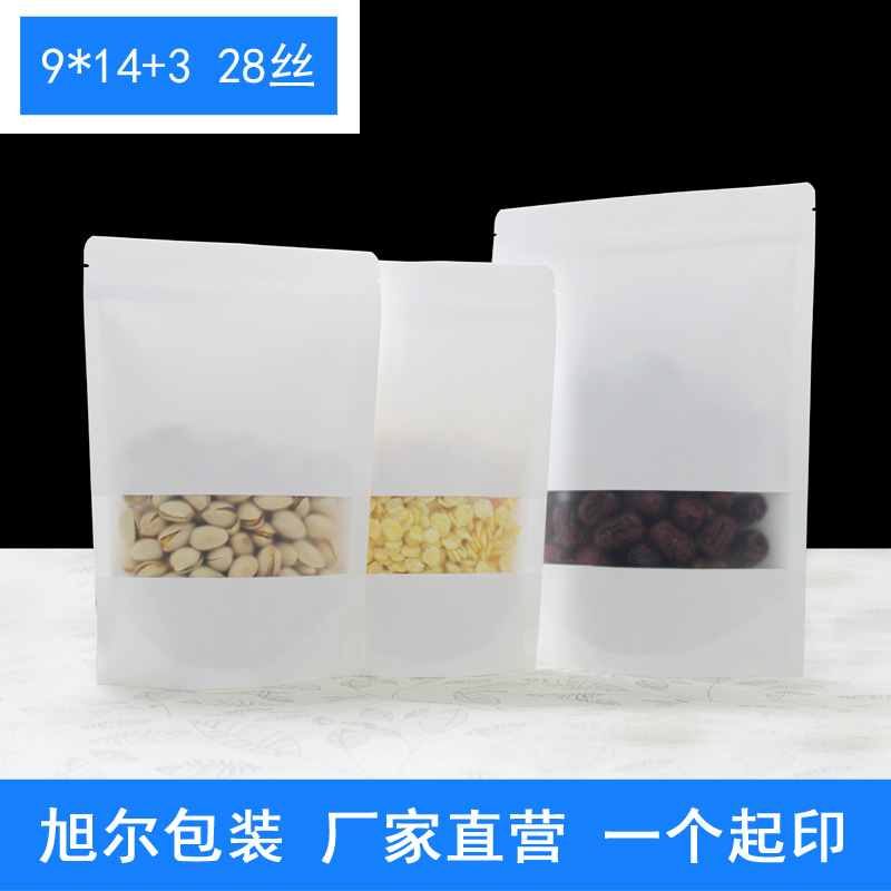 9*14 + 3つや消し窓白色クラフト紙自立自封袋包装袋食品袋瓜子茶葉袋卸売り