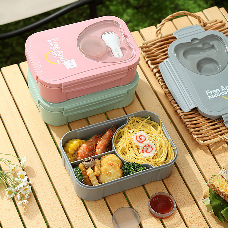 学生用の分割プラスチック弁当箱は電子レンジで使用でき、密封された弁当箱は大人のサラリーマン向けの脂肪を減らすための弁当箱です。