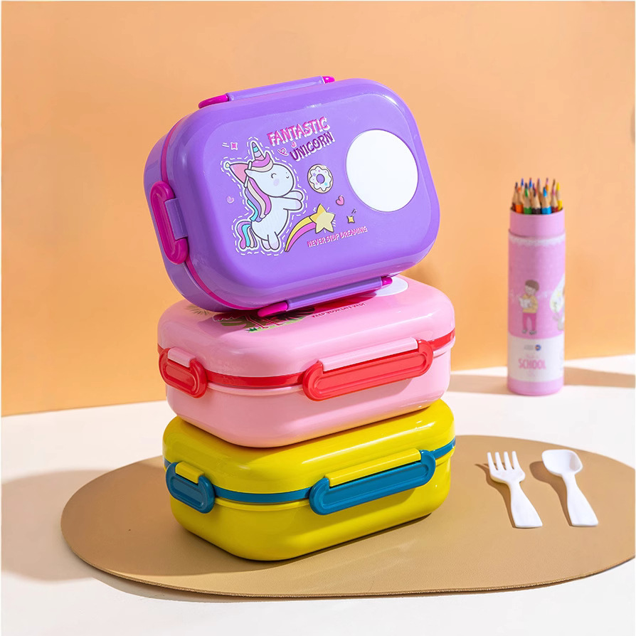 漫画の見栄えの良い弁当箱、加熱可能な仕切り弁当箱、学生の必需品弁当箱、ディップボックス付き、フルーツボックス