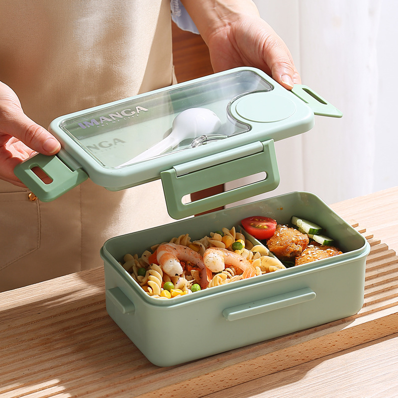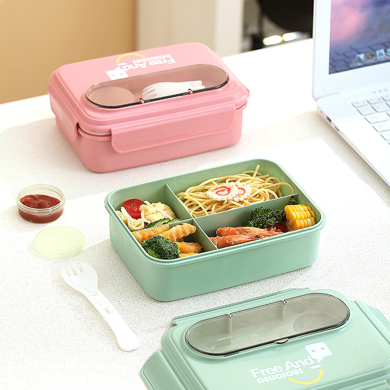 単層プラスチック 4 コンパートメントランチボックス スプーン付きランチボックス ランチボックス 電子レンジ対応ランチボックス