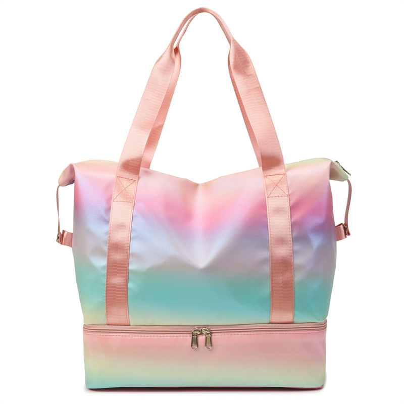 カラフルグラデーション色ヨガフィットネスバッグ大容量耐摩耗性減負手提げ旅行バッグ乾湿分離旅行バッグ
