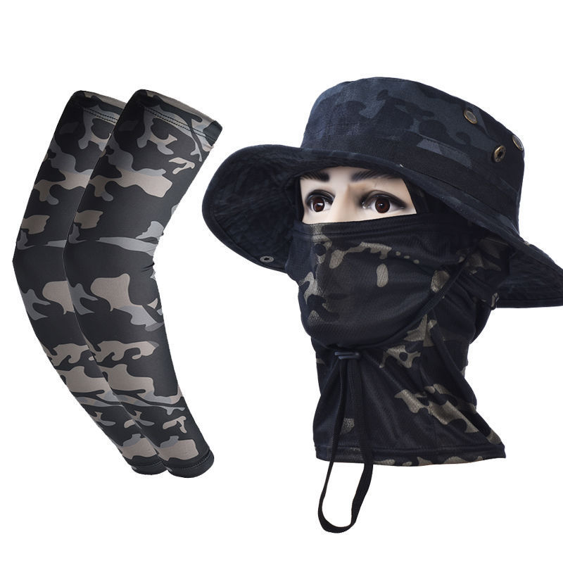 日焼け止め帽子メンズ夏アウトドア釣り帽フルフェイスマスク大きなつば通気性漁師帽迷彩日除け帽子