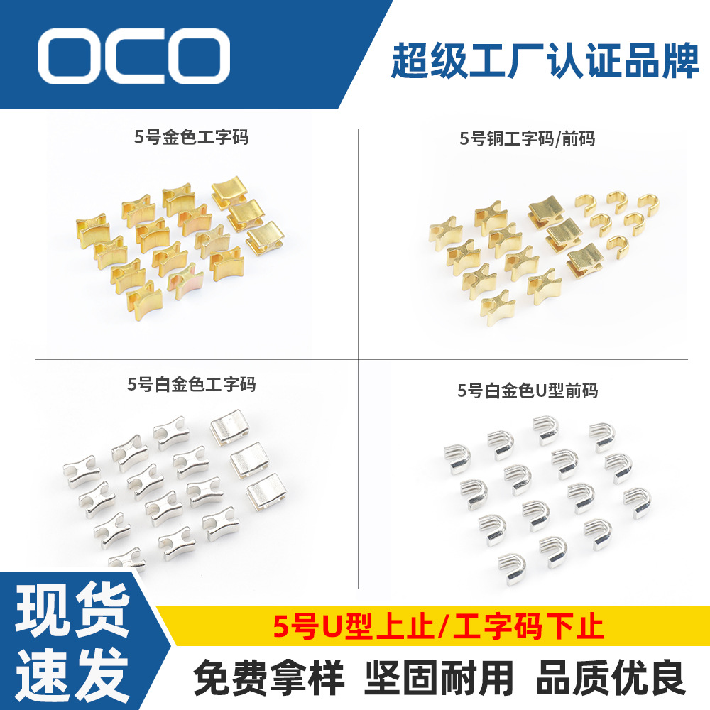 メーカー在庫卸売5号メタルジッパー上部止め・下部止めI字型コードU字型コードジッパー止めメタルジッパーバックル