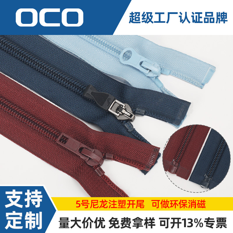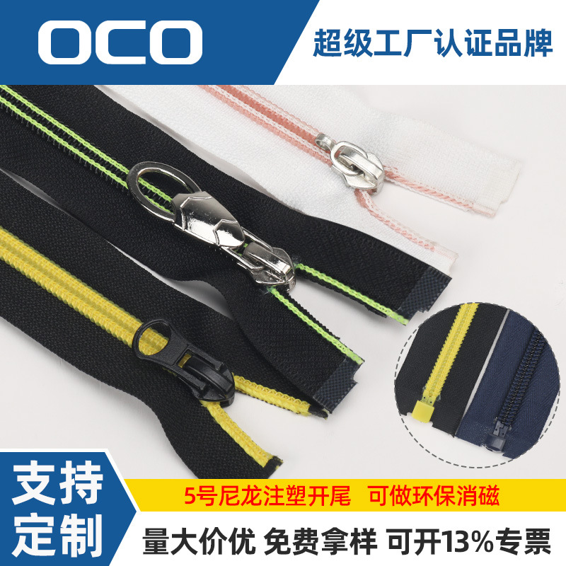 Ocoジッパー工场供给ジャケット制服コート用カラー5番射出成形オープンナイロンジッパー