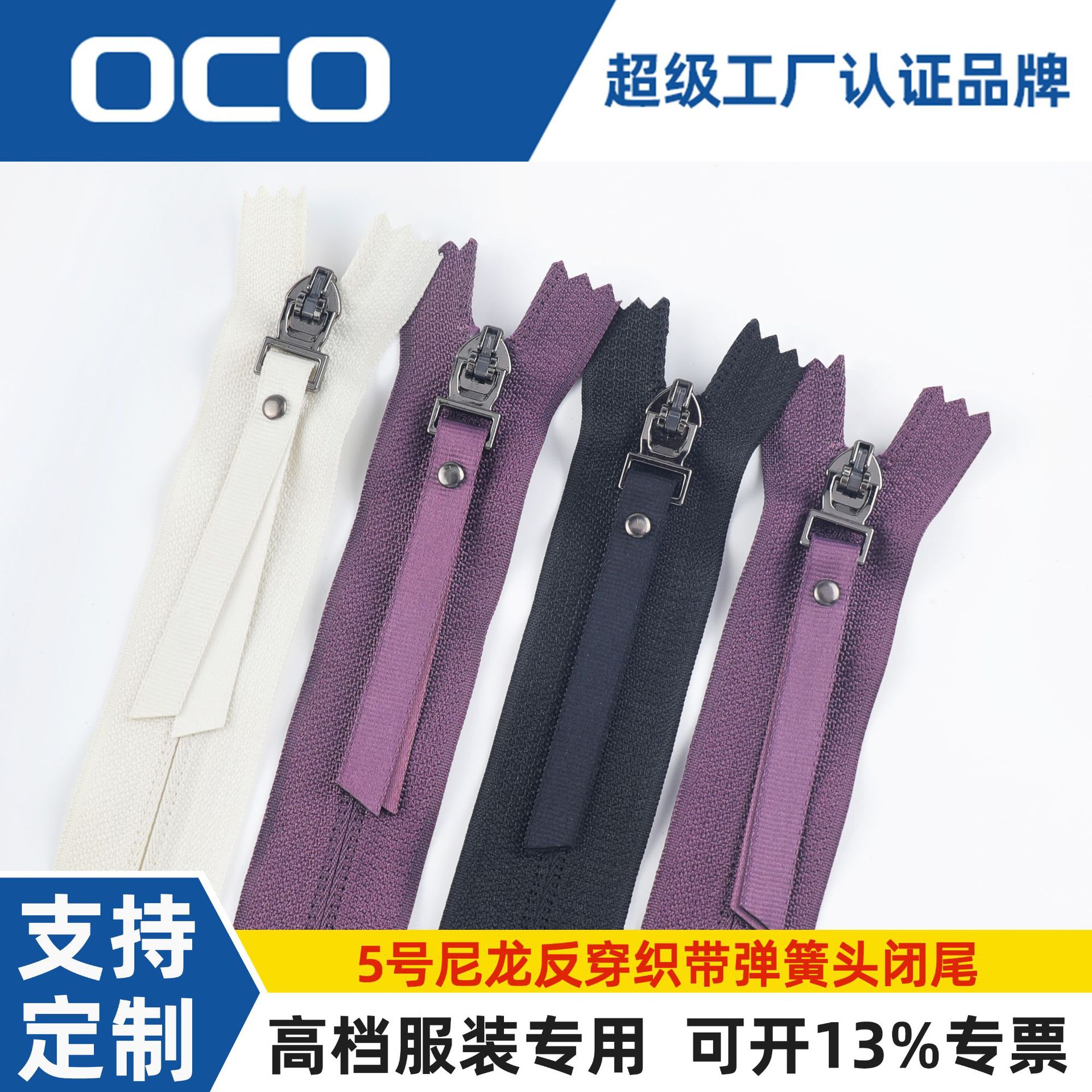 Ocoジッパー工场供给衣服ジャケット用カラー5号セルフロックナイロンオープンテールジッパー