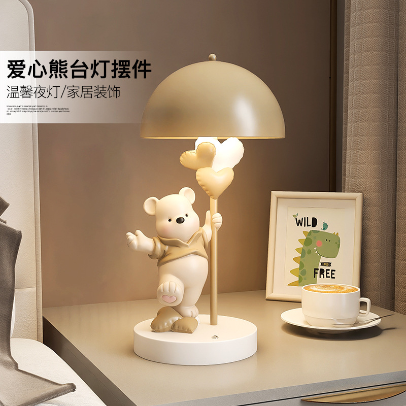 愛心熊が電気スタンドに触れて寝室の子供の部屋のベッドの上の小さな夜の明かりの装飾品の雰囲気ランプの誕生日プレゼントを飾る