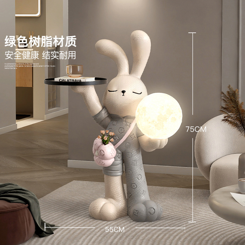 豪華な風の大型ウサギが床に落ちてテレビの棚のソファーのそばのいくつかの客間の装飾品の夜の明かりを飾って新居に引っ越します。